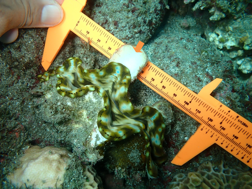 硨磲蛤 (giant clam) 為現生體型最大的雙殼貝,主要分布在珊瑚礁生態系海域。澎湖擁有豐富的珊瑚礁棲地,十分適合硨磲蛤生長,但近年來野外資源量有逐年下降之趨勢。本所為確保硨磲蛤的永續,在海洋委員會海洋保育署計畫支持下,持續進行硨磲蛤人工繁殖育苗、幼貝中間育成培育,並進行幼貝與亞成貝之野外移植放流,以逐步復育天然海域之硨磲蛤族群資源。