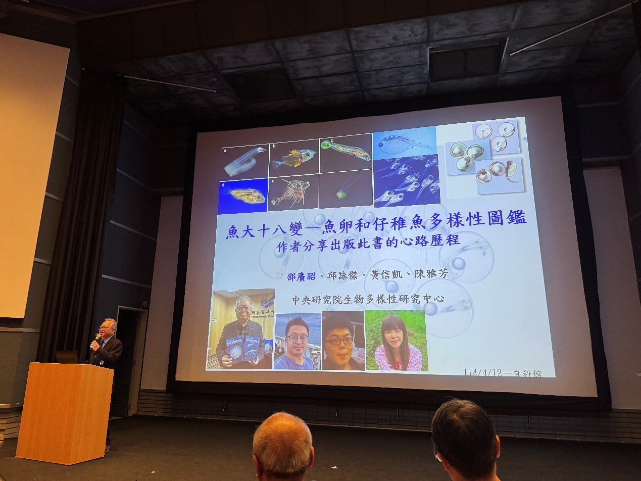 邵老師於會中應邀發表演講,分享其二十餘年來在魚卵與仔稚魚研究領域的心路歷程,並介紹臺灣魚類多樣性的豐富面貌,吸引來自各級學術機構的研究人員、不同世代的魚類學者及一般民眾踴躍參與。筆者亦以共同作者身分獲邀出席。
