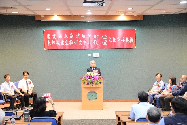 本次典禮由葉信明副所長主持,與會貴賓包括臺東縣政府農業處許家豪處長、成功鎮謝淑貞鎮長、林業及自然保育署臺東分署吳昌祐分署長、成功商業水產職業學校邱申實琪校長、國立臺灣海洋大學蘇楠傑副教授與張文寧助理教授、美國維吉尼亞海洋科學院 (Virginia Institute of Marine Science, VIMS) Kevin Weng教授以及本所人事室江瑜萍主任、沿近海漁業生物研究中心翁進興主任、東港養殖研究中心吳豐成主任、淡水養殖研究中心楊順德主任等齊聚一堂,見證這場隆重而溫馨的交接儀式。