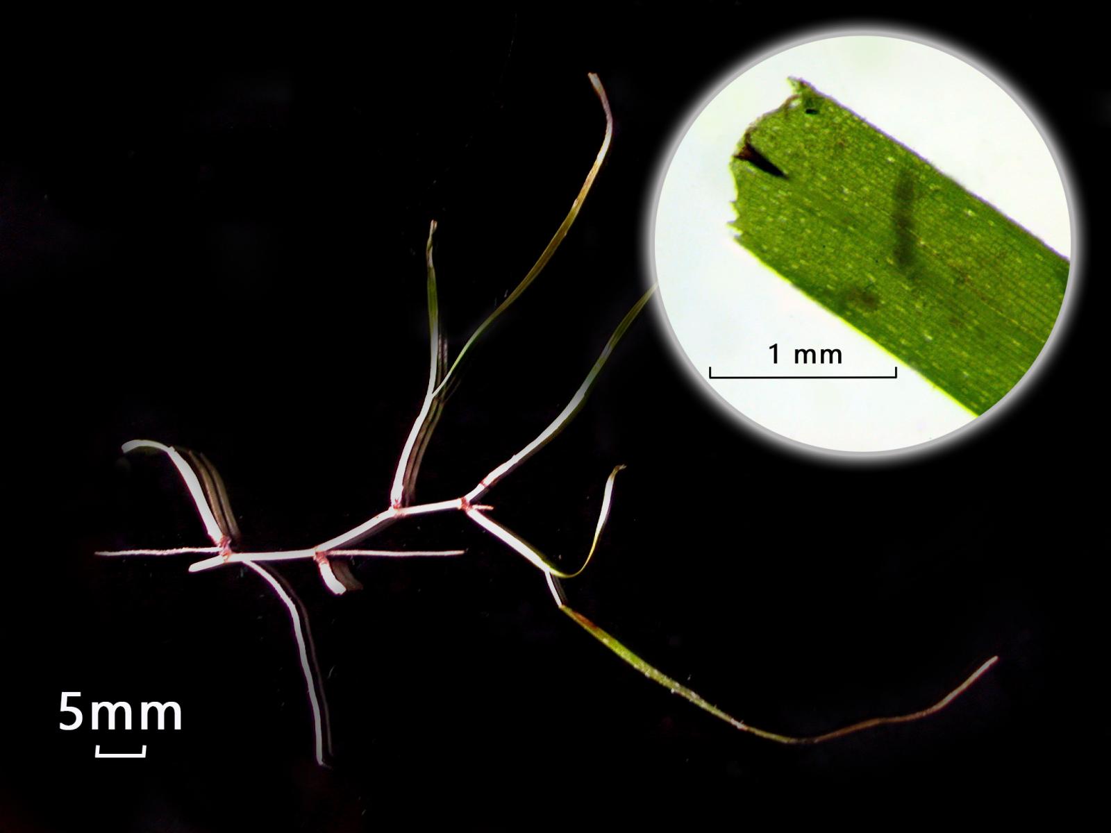 線葉二藥草(Halodule pinifolia)其形態與單脈二藥草相似,二者容易混淆,過去描述澎湖線葉型的海草多被指為是本種,但經水試所在2011年針對澎湖28處進行普查時發現,二藥草屬的種類以單脈二藥草為主,且僅在岐頭與青灣內灣2處海域有紀錄,差點誤將線葉二藥草當作澎湖海草的主力部隊。二者最大的辨別在於葉片寬度,本種葉片纖細,葉寬在1mm以下,且植被密度較為稀疏。其復育策略應與毛葉鹽草相同,採原棲地復育,擴大增加現有族群數量為優先;待族群穩定後才考慮異地復育,擴大族群之分布。
